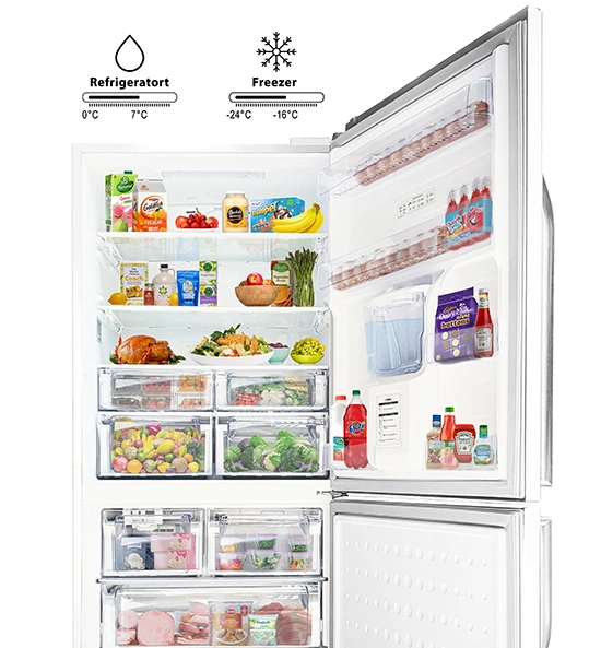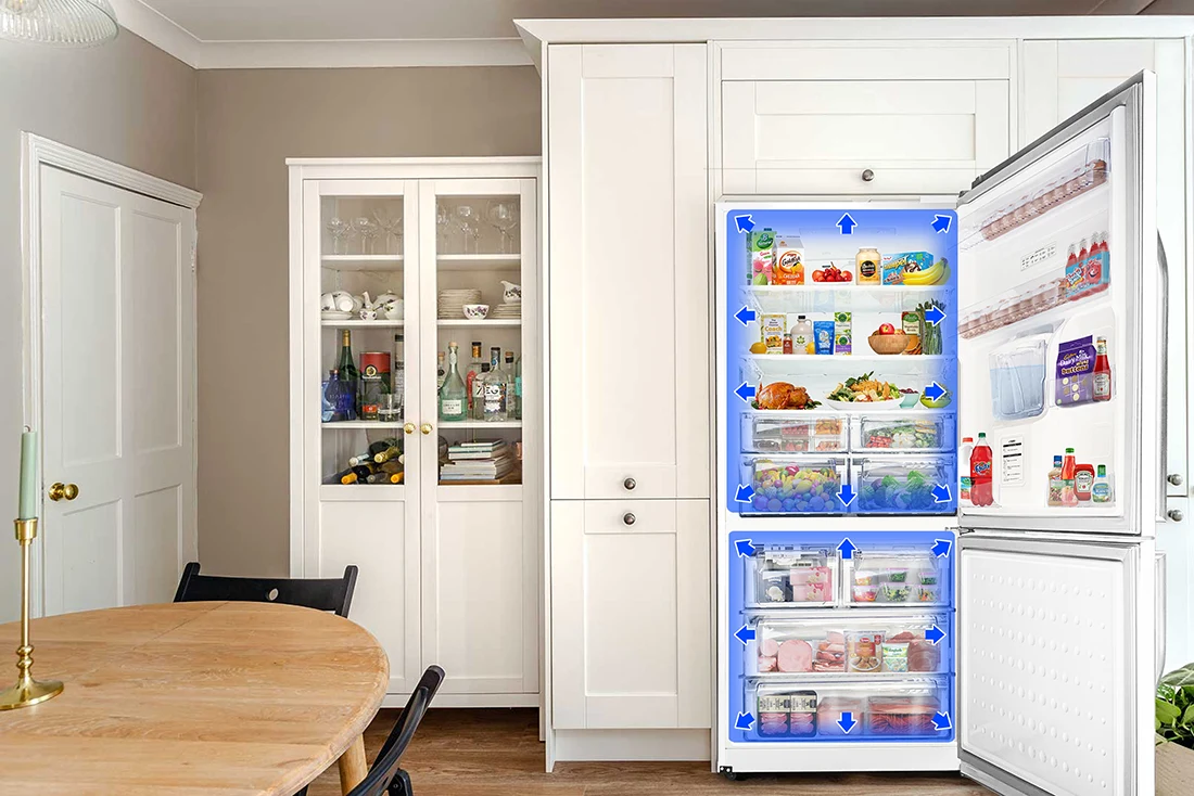 با سیستم سرمایش همه‌جانبه که فریزر را از گوشه تا گوشه خنک می‌کند، مواد غذایی شما برای مدت طولانی‌تر تازه باقی می‌مانند.