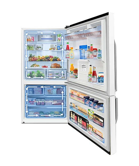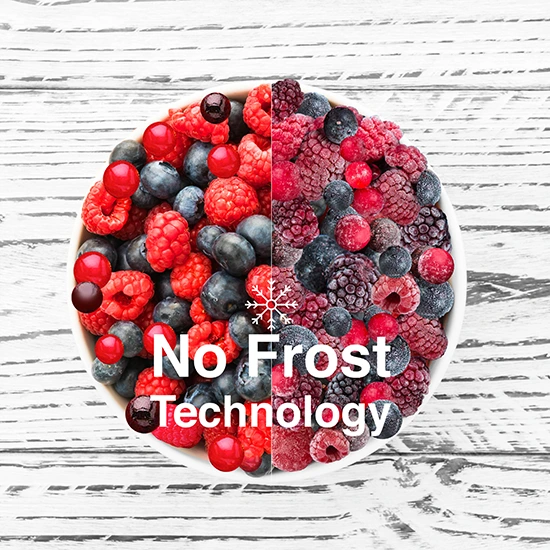 فناوری No Frost با سیستم گردش هوای خشک، رطوبت محفظهها را از بین میبرد و از تشکیل برفک روی مواد غذایی جلوگیری میکند. این سیستم سرمایش باعث میشود فریزر سریعتر به دمای بهینه برسد و انرژی کمتری مصرف کند. با سیستم سرمایش همهجانبه که فریزر را از گوشه تا گوشه خنک میکند، مواد غذایی شما برای مدت طولانیتر تازه باقی میمانند.