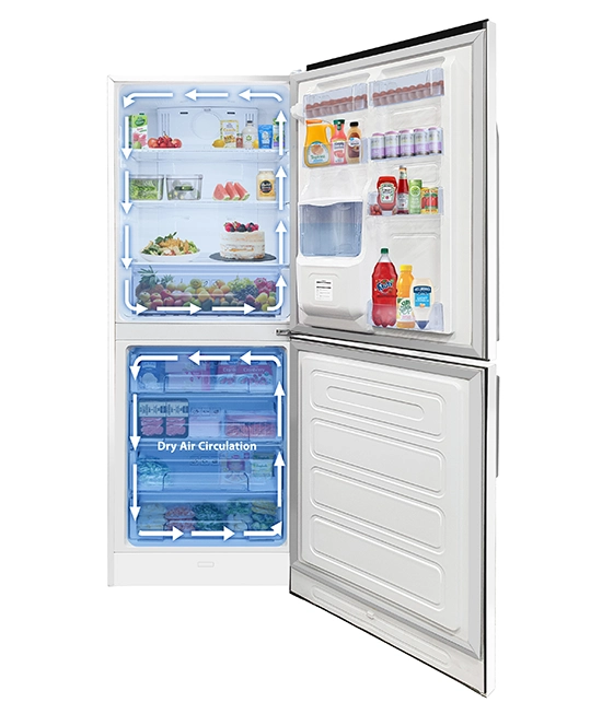 فناوری بدون برفک با سیستم گردش هوای خشک، رطوبت موجود در محفظه‌ها را از بین می‌برد و از تشکیل برفک روی مواد غذایی جلوگیری می‌کند.
