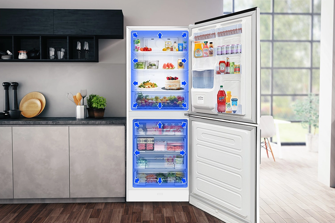 به لطف سیستم خنک‌کنندگی سراسری که هوای سرد را از همه زوایا درون فریزر پخش می‌کند، مواد غذایی برای مدت طولانی‌تری تازه می‌مانند.