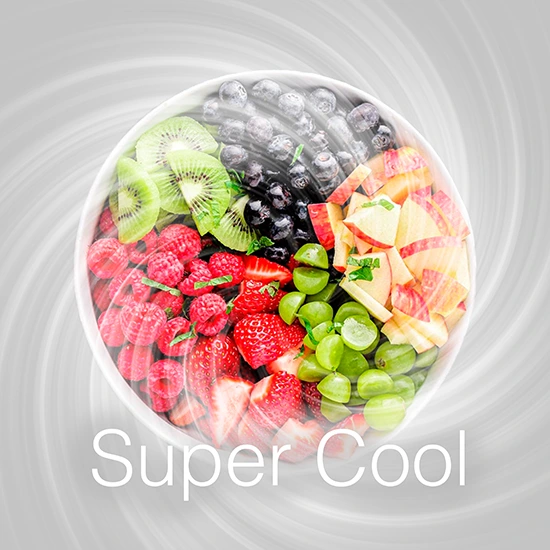 با عملکرد Super Cool، یخچال سریع‌تر به دمای مطلوب می‌رسد و انرژی کمتری مصرف می‌کند. همچنین عملکرد Power Cool غذاها را برای مدت طولانی تازه نگه می‌دارد و مواد غذایی شما را به‌سرعت خنک می‌کند.